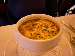For starters, I indulged in the world-famous Onion Soup, and I must say, it lived up to its reputation. The soup was perfectly crafted, with an abundance of cheese that added a rich and savory depth to each spoonful. The flavors danced on my palate, making it clear that I was in for a treat. The Escargots followed, and while I missed the theatrical aspect of having them served in their shells, the buttery and garlic-infused preparation more than made up for it. Each bite was a delectable journey into the heart of French cuisine.