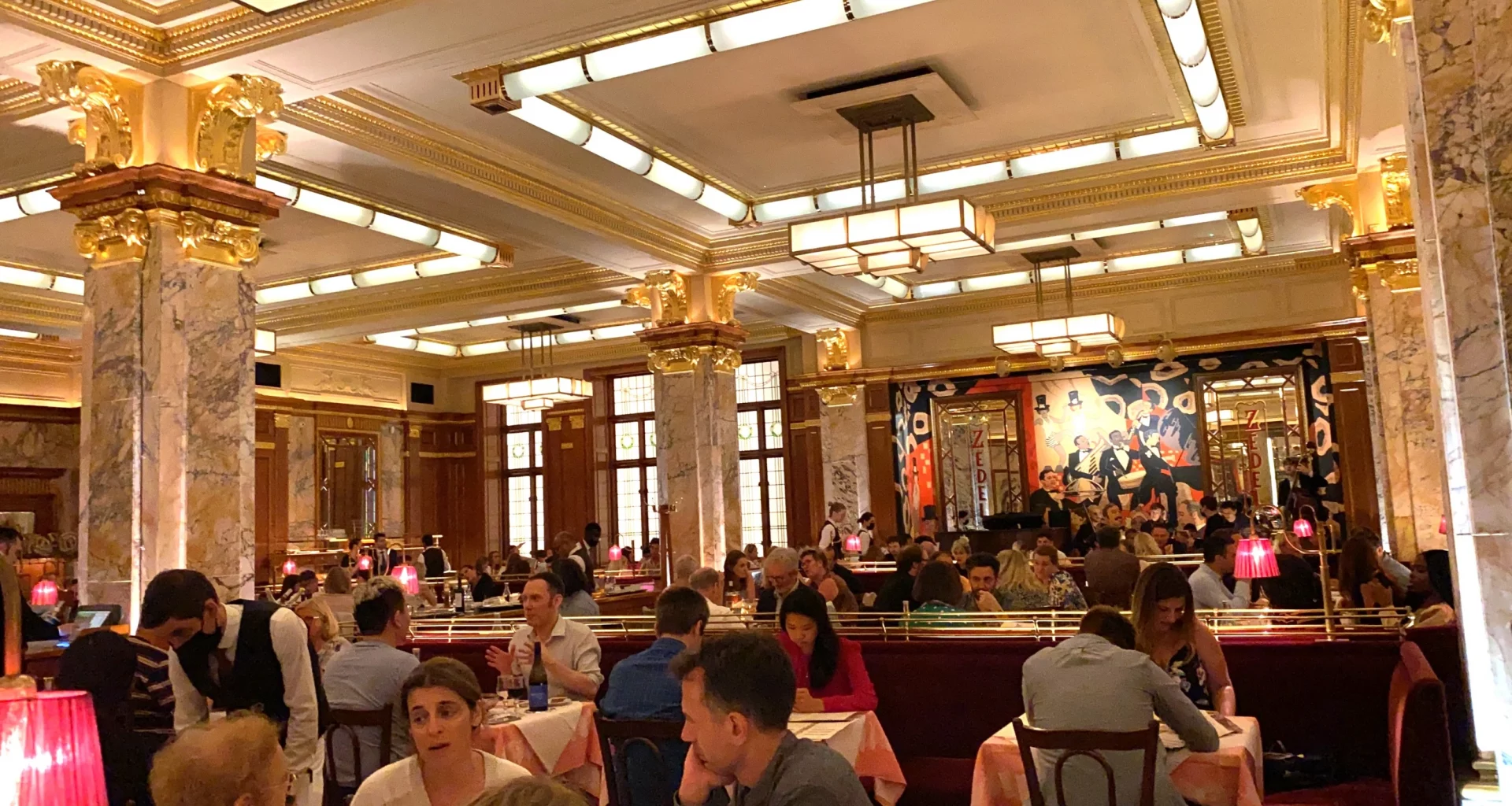 My boyfriend and I arrived at the restaurant in Soho at 9:00pm on a summer evening. It had such a bustling atmosphere upon arrival! Walking into the Brassiere Zédel entrance hall felt imposing due to the authentic Art Deco interior. It almost felt like an upscale hotel lobby!